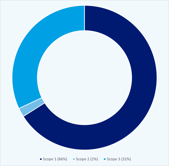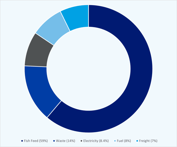 Sealord’s aquaculture business has a baseline carbon footprint of 29,114 tCO2e (Scope 1 – 2,562 tCO2e, Scope 2 – 2,440 tCO2e, Scope 3 – 24,110 tCO2e). Scope 3 emission are largely fish feed with 71% from this source. The baseline intensity measure for aquaculture is 4.07 kg CO2e per kilogram of net fish growth (removing any mortality biomass). Emissions due to waste (landfill) as a percentage is high in 2025 due to a mortality issue at one of the salmon farms.